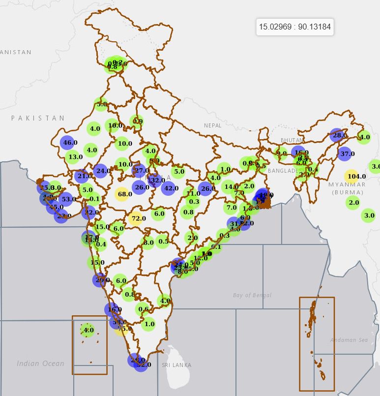 IMD की ओर से जारी मैप के अनुसार, देश के कई क्षेत्रों में 46 सेमी तक बारिश हुई, खासकर दक्षिणी और पश्चिमी हिस्सों में। विभाग ने अगले कुछ दिनों में भी भारी बारिश की संभावना जताई है, जिससे लोगों को सतर्क रहने की सलाह दी गई है।